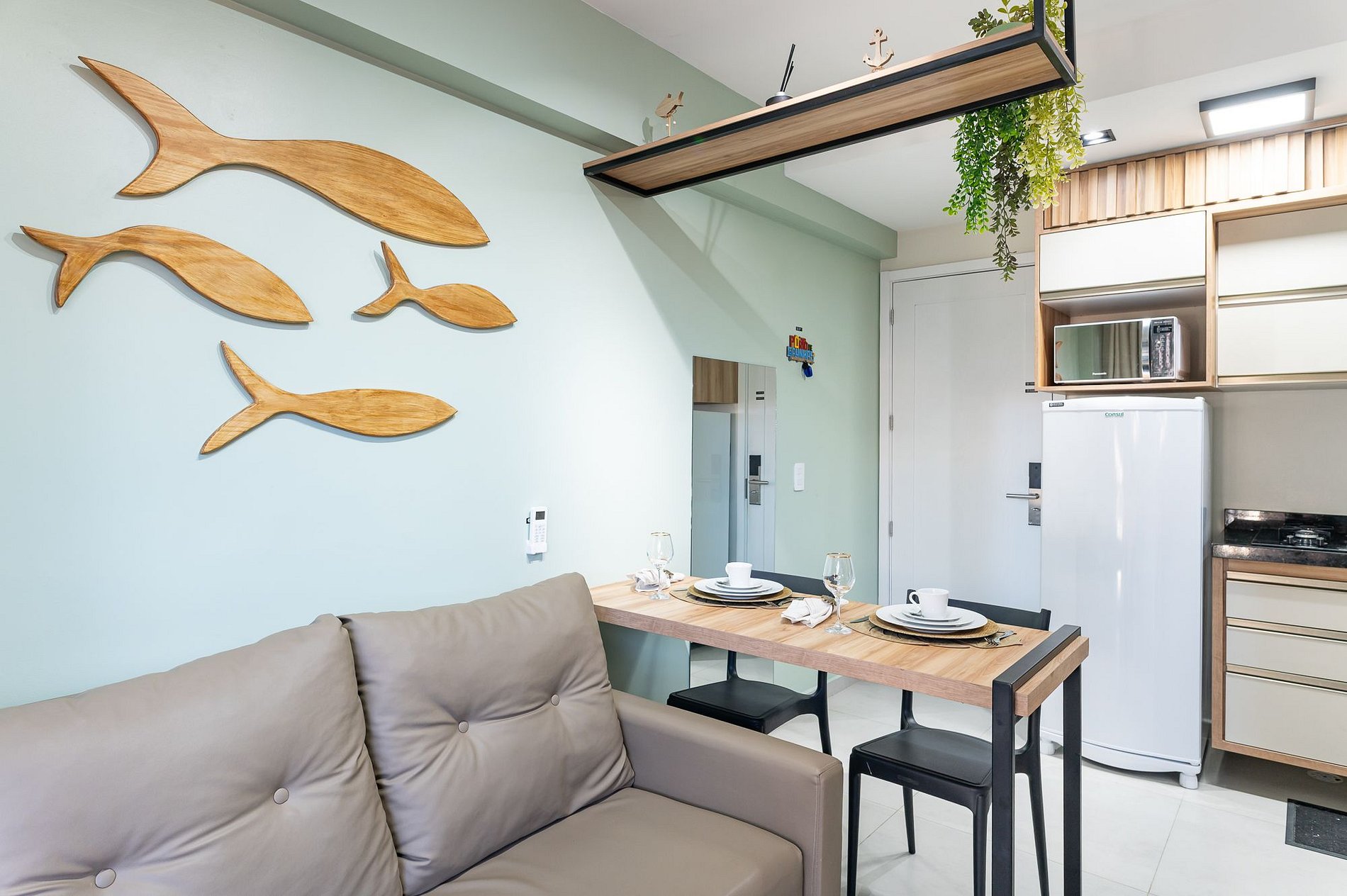 The Flat comfortably accommodates 4 people. Private room with split air and smart TV. Kitchen equipped with all utensils. Living room with a comfortable sofa bed, smart TV and split air. Cozy balcony with gourmet area. Privileged location in the center of Porto de Galinhas. You don't need to use an Uber or a taxi, do everything on foot. 2 minutes from Rua das Umbrinhas. Security guaranteed, we are next to the Porto de Galinhas police station. Just 50m from the sea in front of the center's natural pools. Make your reservation and be surprised.