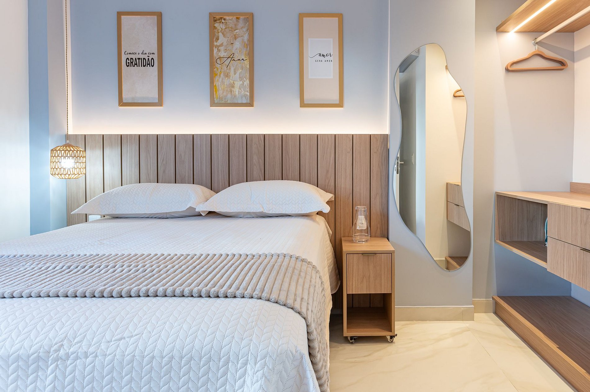 Amamos a localização, ao lado da rua das sombrinhas. Amamos a organização do Flat, tudo de muito bom gosto, com equipamentos mais do que necessários para a sua estadia, até ferro de passar roupa tem. A piscina, uma delícia, com água limpa e quente. Espaço do Flat muito bem distribuído e aproveitado com cada detalhe. Amamos também o atendimento da Rosana, foi de pronto atendimento quando precisamos de ajuda para tirar dúvida, quando chegamos. Espaço dos corredores e entrada sempre limpos e cheirosos. Sem dúvidas, um achado essa estadia nesse Flat.