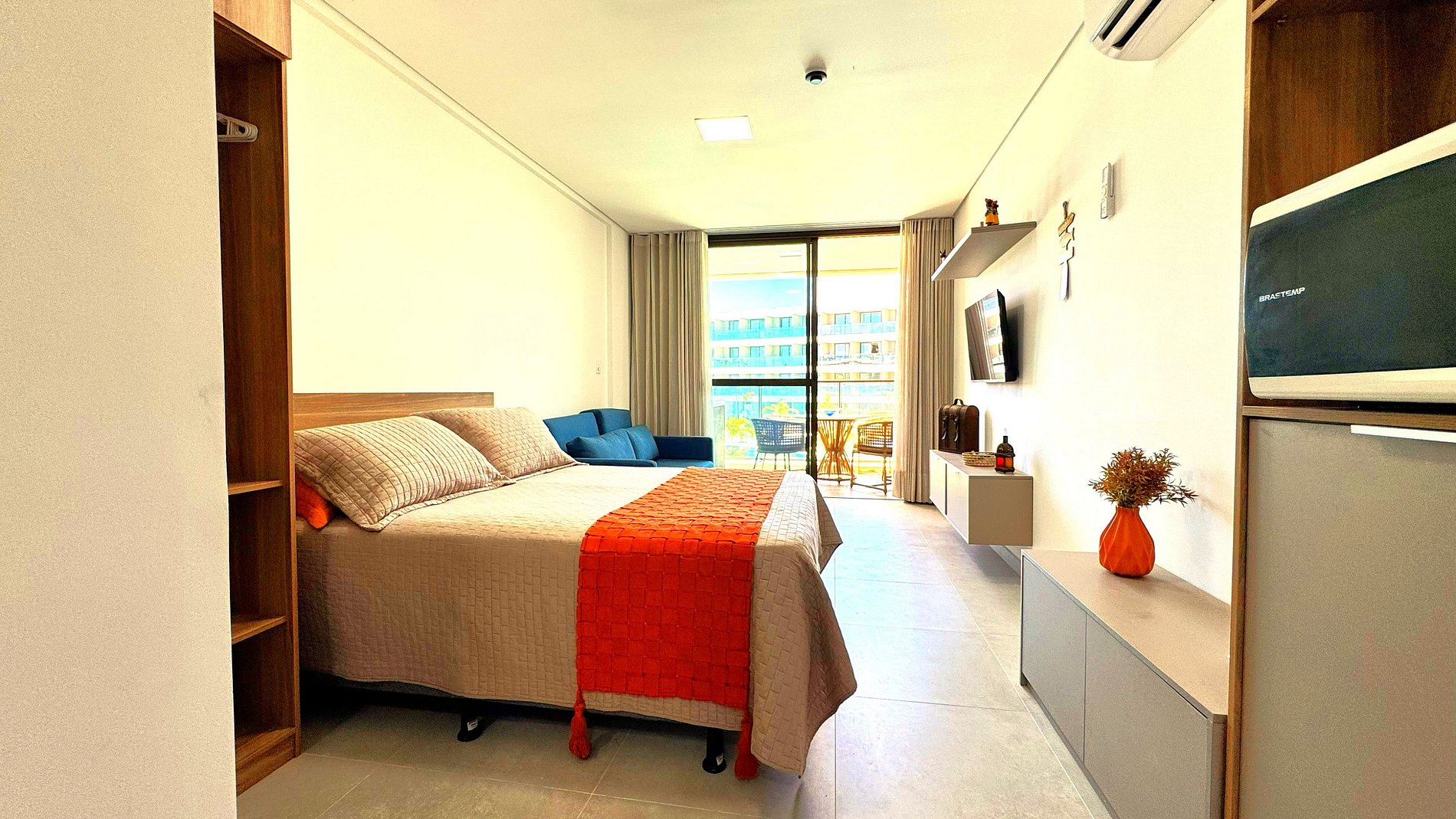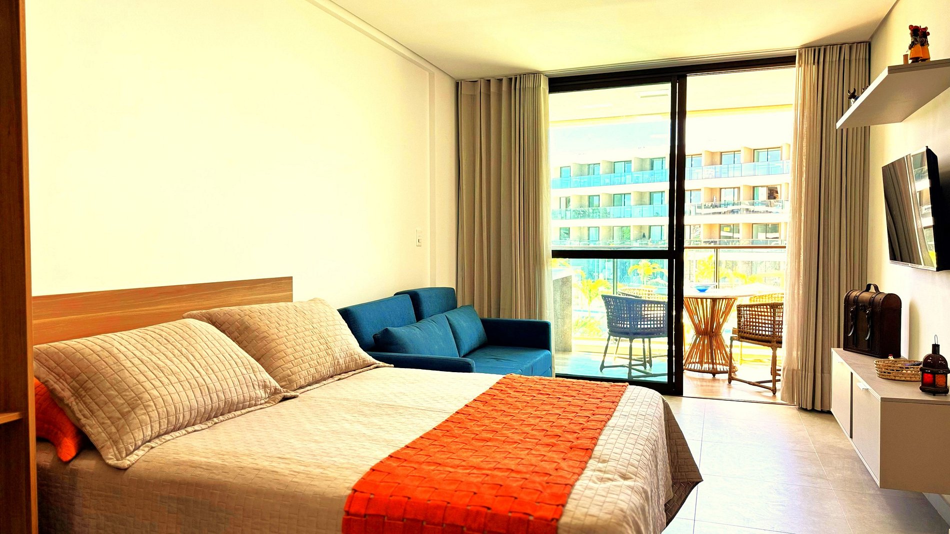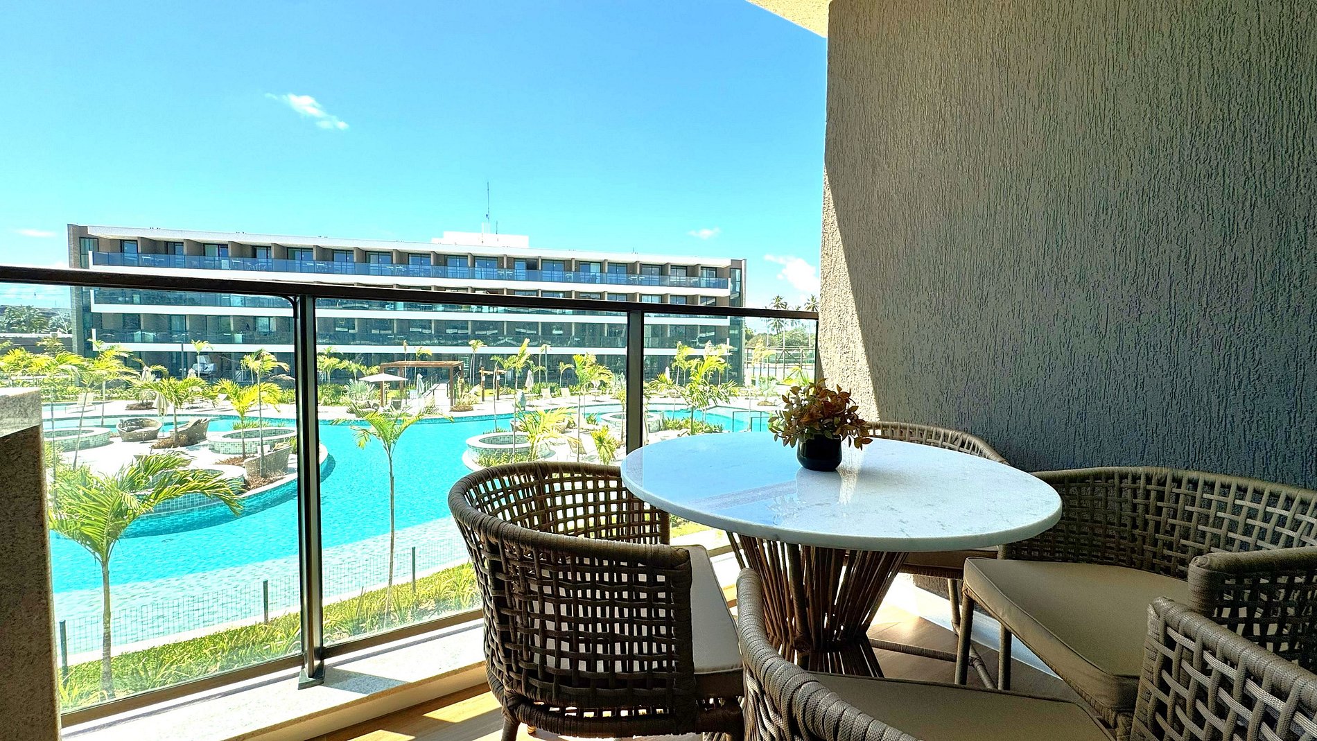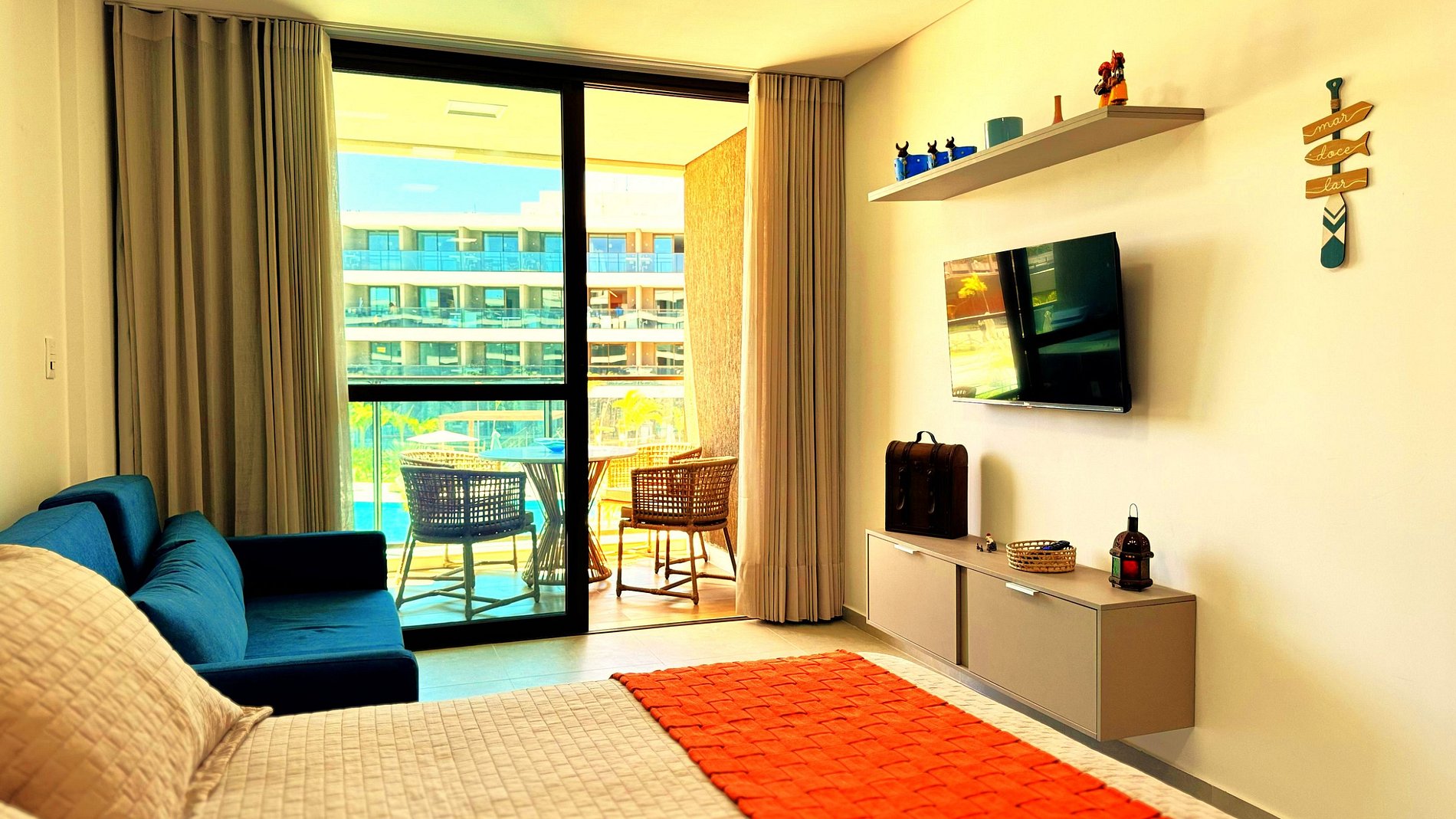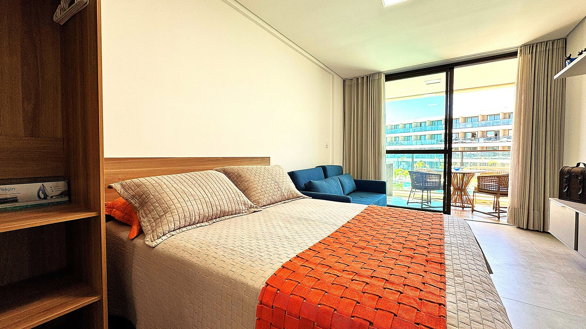 O hóspede tem acesso a toda a estrutura de lazer do Beach Class Verano, que inclui piscinas amplas, áreas de descanso, jardins bem cuidados, academia, restaurante, além de estacionamento e portaria com controle de acesso. Tudo isso em um ambiente seguro e organizado, com padrão de resort.